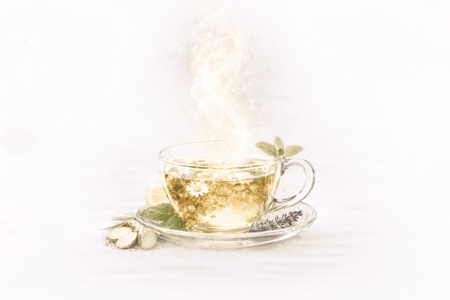 A warm botanical infusion designed to calm the body and focus the mind.